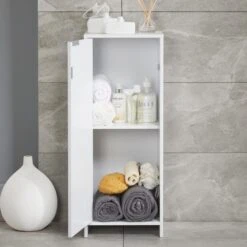 Lloyd Pascal Jaxon White Single Door Floor Cabinet With Adjustable Shelf