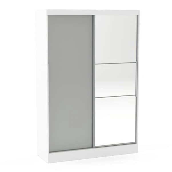 The Lynx Double Mirrored Wardrobe is a great way of adding storage to your bedroom. This modern collection of bedroom furniture boasts a modern high gloss finish in a choice of colours with complimentary silver handles. Complete with an internal shelf and a hanging rail, this wardrobe is offers plenty of space and is fashioned with two sliding doors, making it ideal for compact spaces.