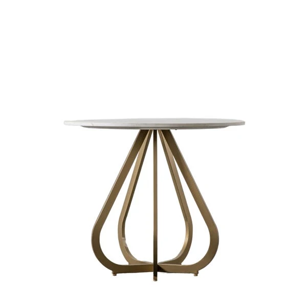 Dine with style and elegance with the Valemont Dining Table, a round table top, flowing shapes on the base and a clean marble top. Suitable for 4 seats and available in black or gold metal colour options, this table has a unique and exceptional design feature where the legs are designed to create a delightful raindrop movement without compromising on the solid base. Includes: 1 x table top, 1 x table legs & fixtures.