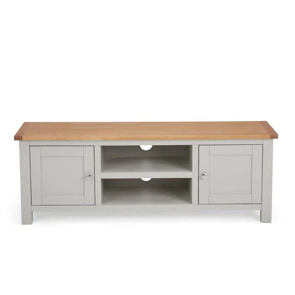 This wide Bromley TV unit comes complete with a fixed shelf, two ample sized cupboards and cable access, perfect for storing away household items and keeping cables neat and tidy.