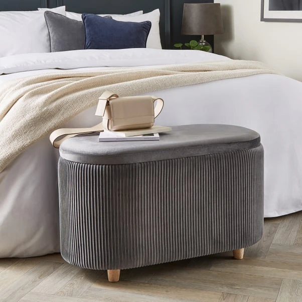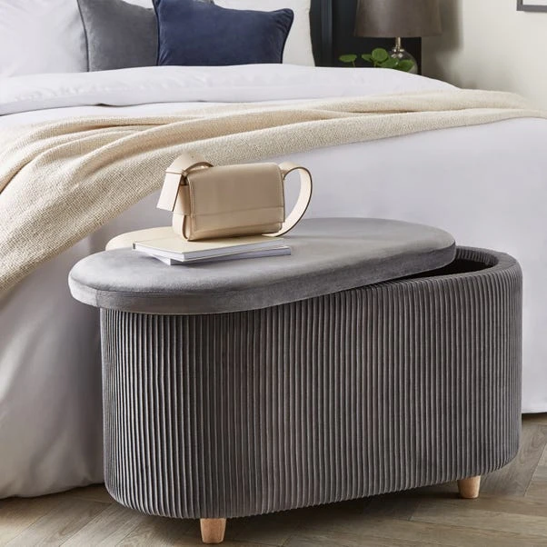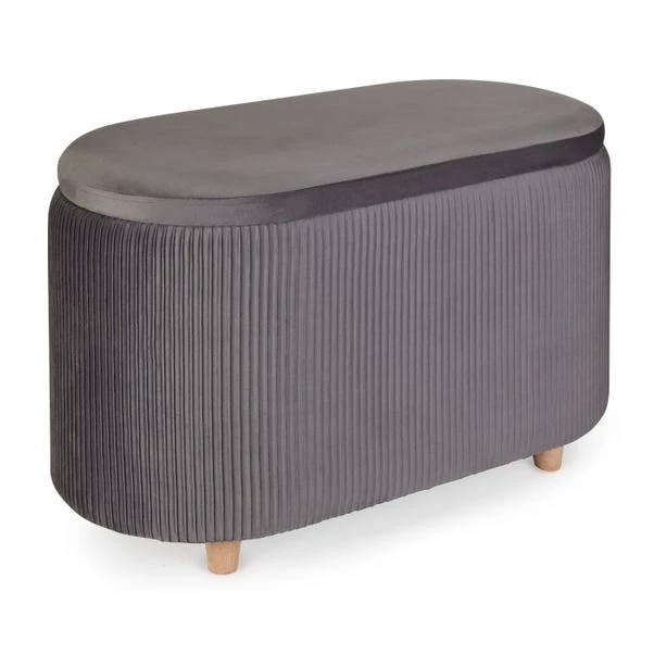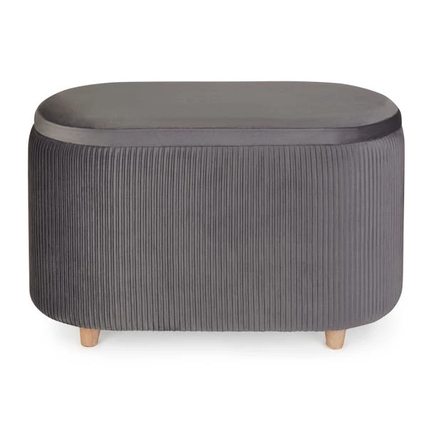 The Florence Velvet Ottoman is a stylish and chic addition to any home and perfect for adding a pop of colour to your space. Upholstered in a soft velvet fabric with a stylish pleated design, this ottoman is both beautiful and practical. The ottoman has a lift-top lid to reveal ample storage space, perfect for keeping your space clutter-free. This multi-purpose ottoman can be used as a footrest, occasional seat, or storage ottoman.