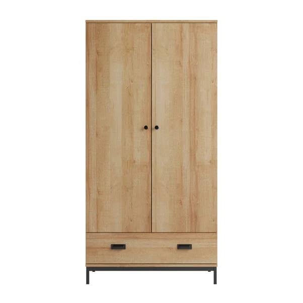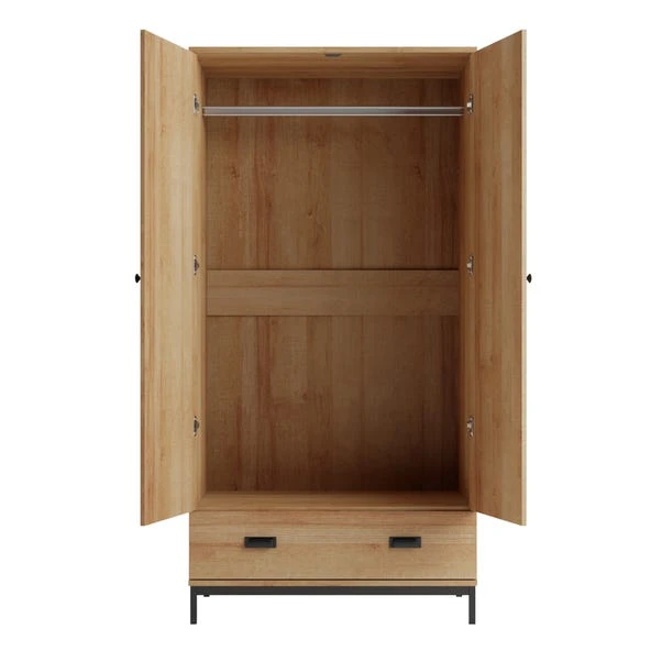 Here’s the deal with this stylish wardrobe: it does more than just store your stuff – it adds a little industrial-inspired style to your home. Featuring a rustic pine effect finish and black metal handles. With spacious hanging rail and drawer space, you’ll be more organised than ever before.