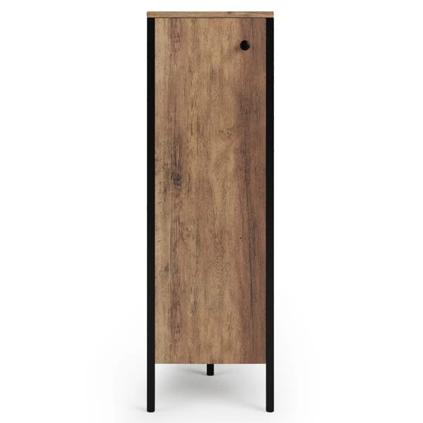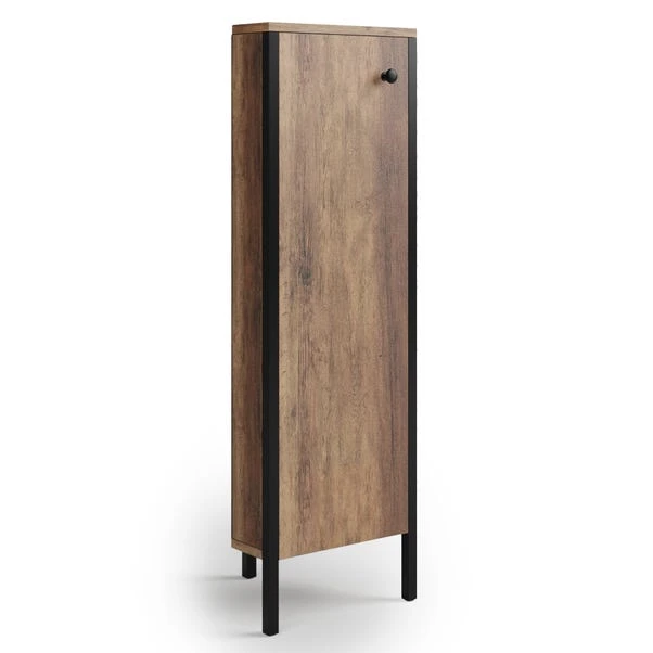 Taking advantage of otherwise awkward or unused corner spaces, the Fulton corner unit has plenty of discreet storage space with 2 tall shelves behind the cabinet door. Store rolled up towels, loo rolls, bath bombs, lotions and potions, and anything else that seems to clutter up the bathroom. The wood grain effect and black metal detailing is sure to look great in any bathroom, and matches the rest of our Fulton range.