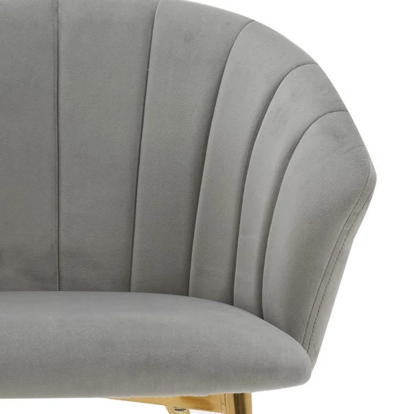 The Kendall Velvet Carver Chair features a generously proportioned, foam-filled seat with comfortable armrests. Taking inspiration from the art deco style, this stylish carver chair is finished with a pleated, curved back shell that has been upholstered in a soft touch velvet fabric. This paired with the stunning gold-finished metal legs add a sense of luxe and is sure to elevate the look of any space.