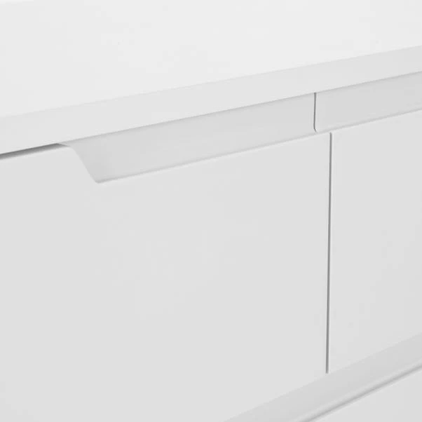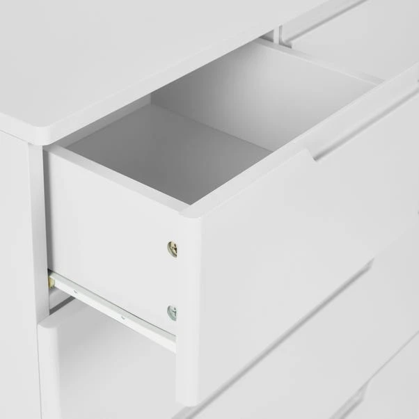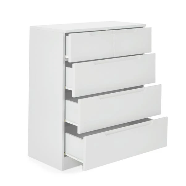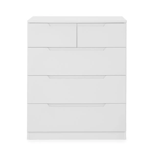 Offering a perfect blend of modern and minimal styling, the Larson chest of 3 drawers will add a fresh touch to any room of the house. Featuring a funky groove handle design, along with the 5 drawers makes this self-assembly chest both practical and attractive. With ample storage space, this chest is perfect for keeping your room organised and clutter free.