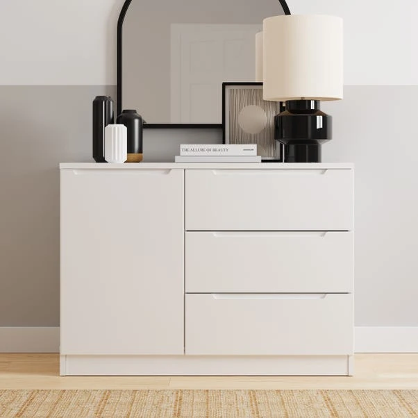Keep your home clutter free with the Larson Small Sideboard. Compact enough to fit almost anywhere in your home, it still has plenty of storage and display space to offer thanks to the cabinet and 3 drawers. Finished in a timeless white finish to fit in with any existing decor and interior styles.