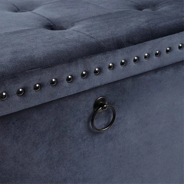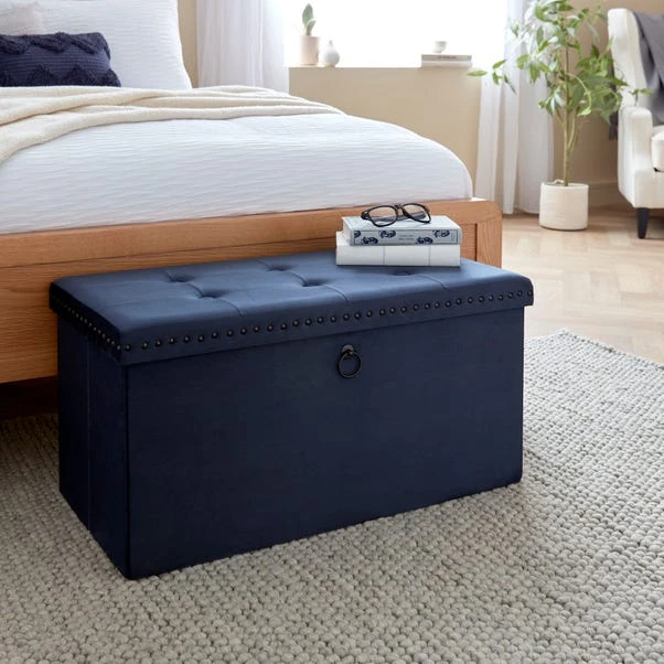 Dunelm Luxe Traveller Navy Velvet Ottoman