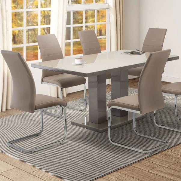 This Riley dining table is perfect for your dining room. The glossy effect finish adds a touch of elegance, while the tempered glass gives it modern style. This table seats up to 6 people and will look great with any type of decor. This table is a great size for lavish dinner parties and cosy meals with the family.
