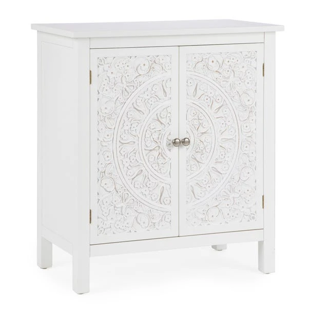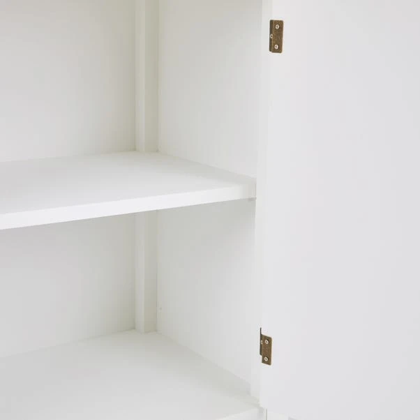 Finished in a white colourway, the Samira small sideboard features a spacious cupbpoard space with a fixed shelf, providing plenty of useful storage space.