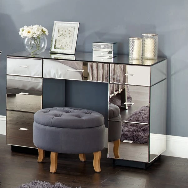 Complete with seven ample sized storage drawers, this Venetian dressing table is easy to assemble and features silver handles.