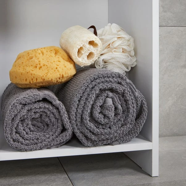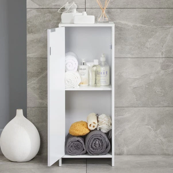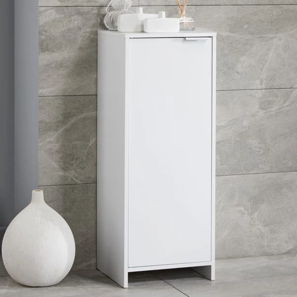 Boasting a crisp, clean satin finish, this Jaxon Floor Cabinet is ideal for keeping your bathroom neat and tidy. Made from durable MDF and with stylish chrome handles, this cabinet is strong, versatile, and easy to assemble. This sleek cabinet features ample, adjustable storage space and shelves inside so you can organise all your bathroom essentials easily. This cabinet features a timeless white design that would compliment any bathroom interior beautifully. This item can be coordinated with other items from the Jaxon Range.