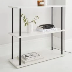 Dunelm Aiko Side Table With 1 LED Light Black And Faux Marble