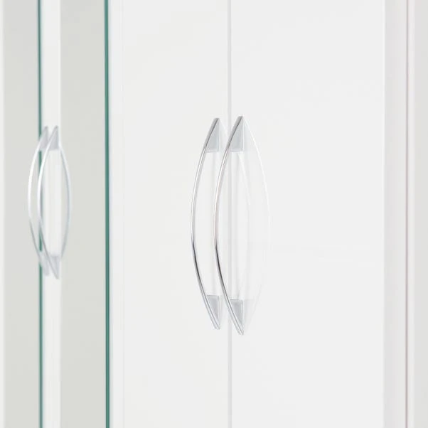 The Nevada 4 Door 2 Drawer Mirrored Wardrobe features a contemporary design owing to the gloss finished front which contrasts perfectly with the light oak veneers. The Nevada has your storage needs covered thanks to the 2 drawers, top shelf and hanging space from the metal rail.